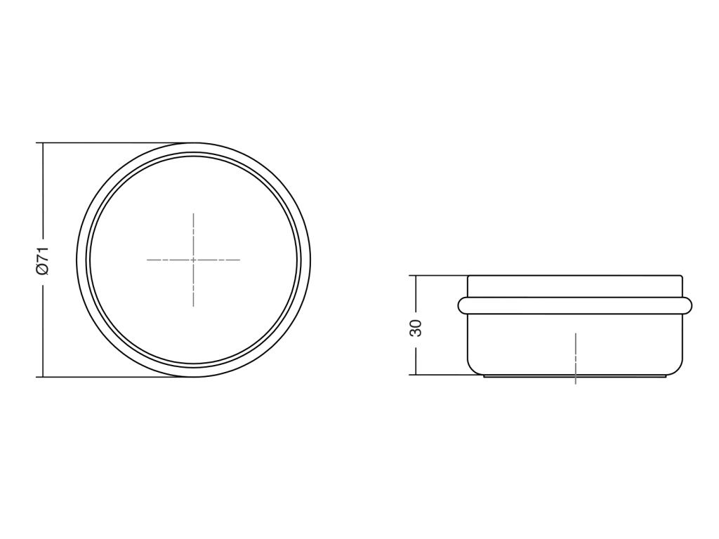 Rozměry: průměr 65 mm, výška 30 mm.